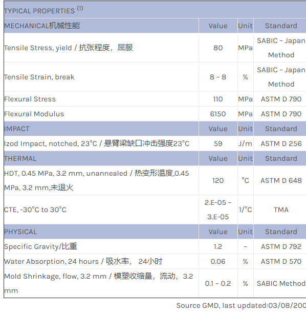 应用范围:产品描述NORYL PPO NCF0810物性表