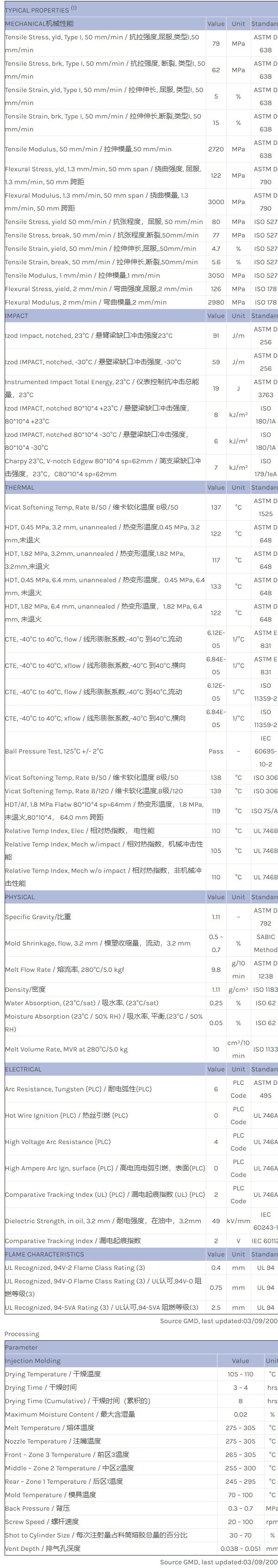 应用范围:产品描述NORYL PPO NH5020物性表NORYL NH5020 resin是一种聚苯醚+PS(PPE+PS)产品,可以通过注射成型进行加工。特性包括:阻燃/额定火焰Flame Retardant耐热水解稳定性无卤素相关色号:NH5020-BK1005