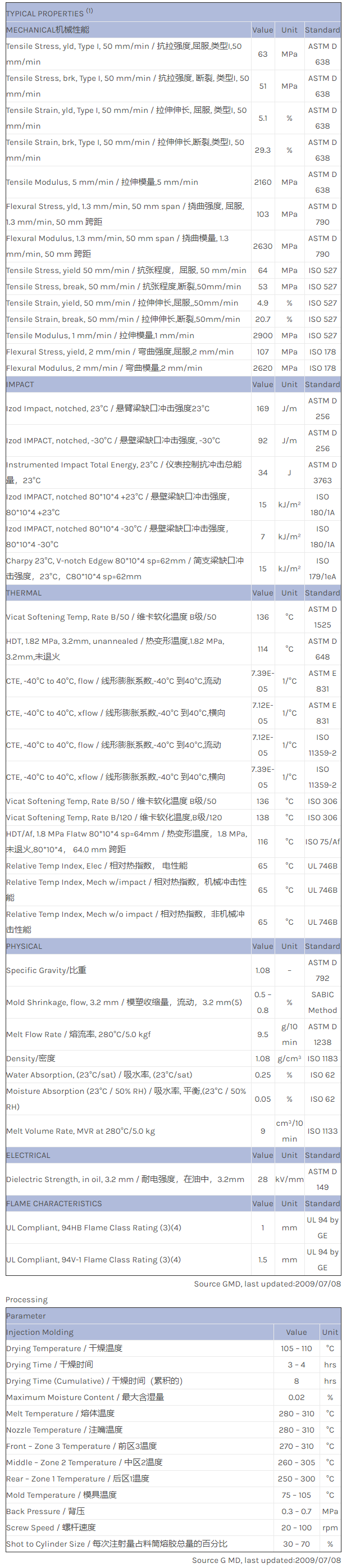 应用范围:产品描述NORYL PPO NH5120R物性表