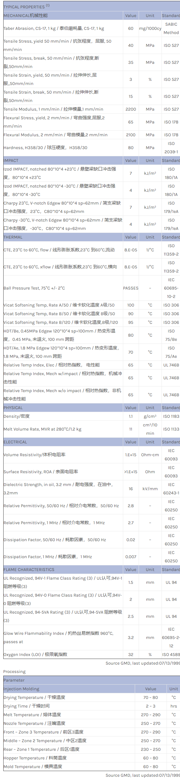应用范围:产品描述NORYL PPO PO2333物性表PO2333 is a flame retardant PPO/PS grade with low heat performance and excellent flow characteristics.
