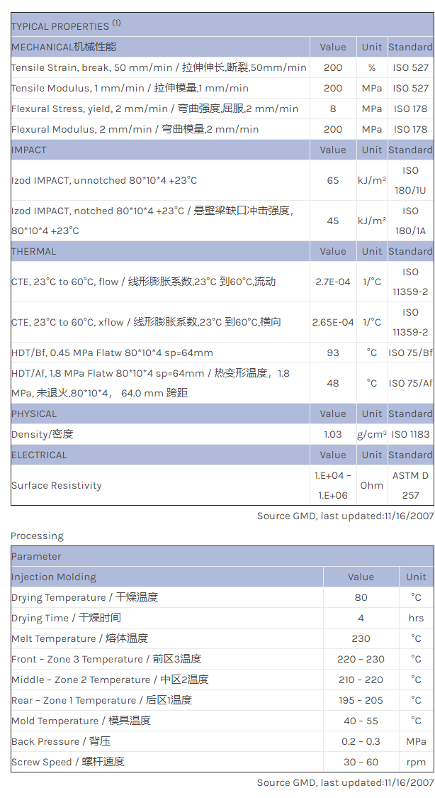 应用范围:产品描述LNP STATKON FX99030物性表LNP * Stat-kon* FX99030 is a compound based on Polyethylene resin containing Carbon Powder. Added features include: Electrically Conductive.