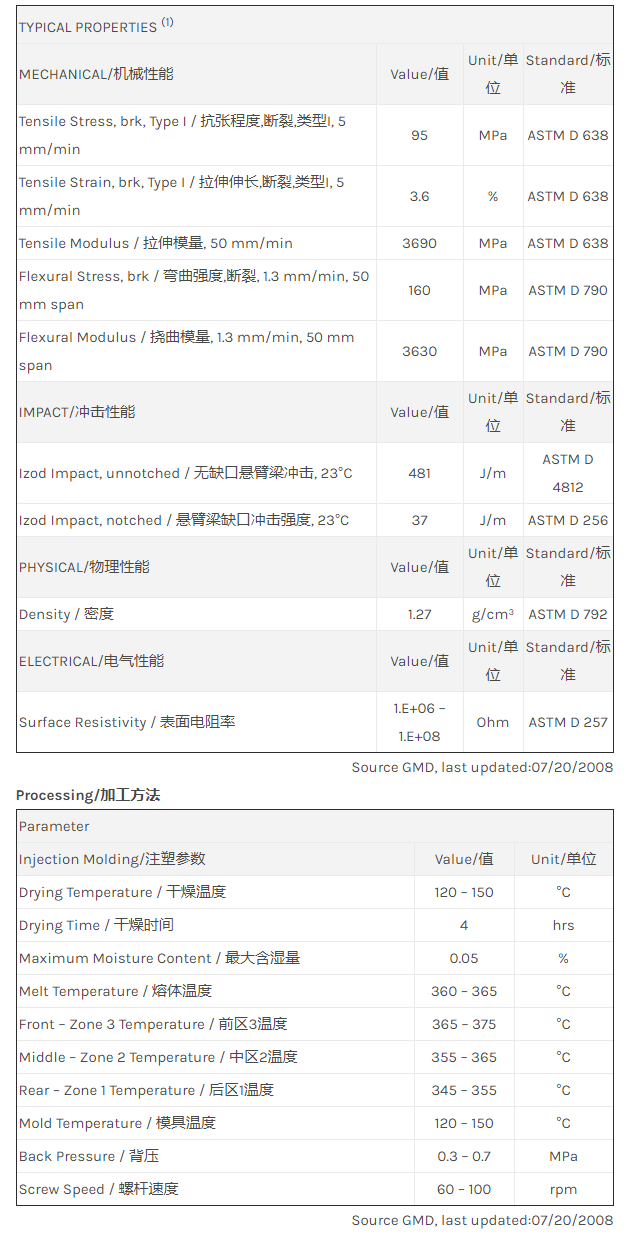 “肇庆LNP STAT-KON EX01696C是一种聚醚酰亚胺(PEI)材料,含有的填充物为专有填料,加工方式为:注射成型。