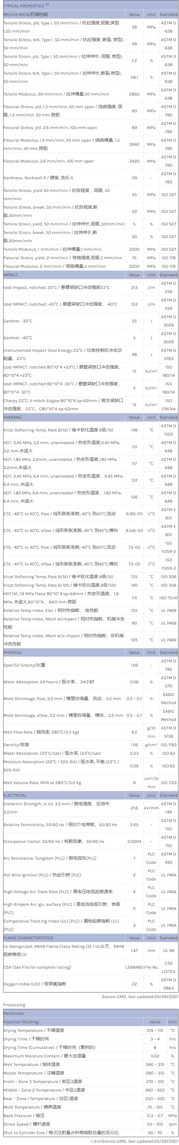 NORYL HN731A resin是一种聚苯醚+PS(PPE+PS)产品,可以通过注射成型进行加工。