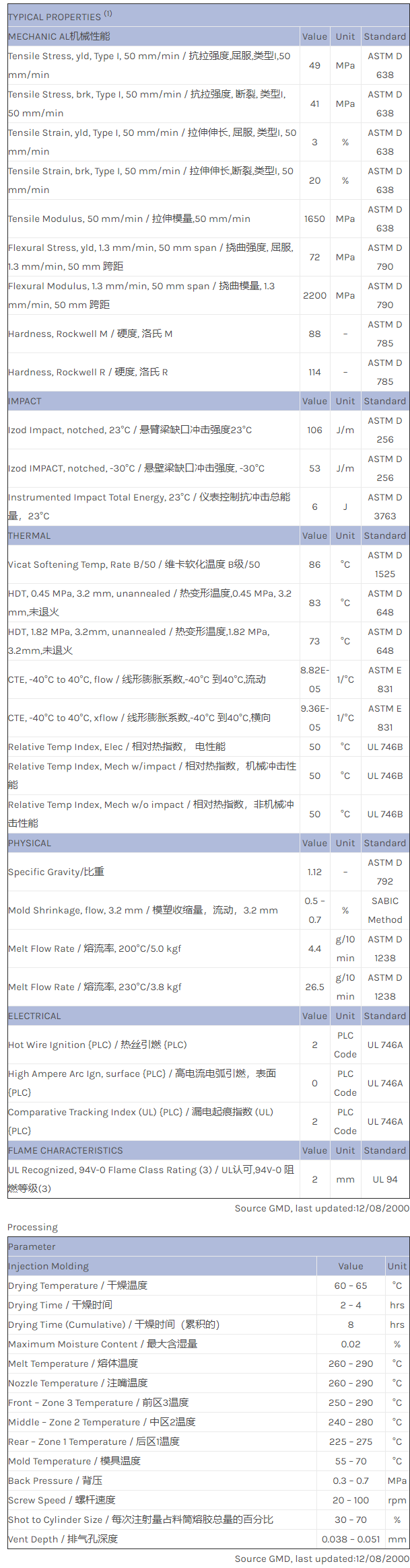 应用范围:产品描述NORYL PPO N165HF物性表High flow PPO resin. V-0 rated.