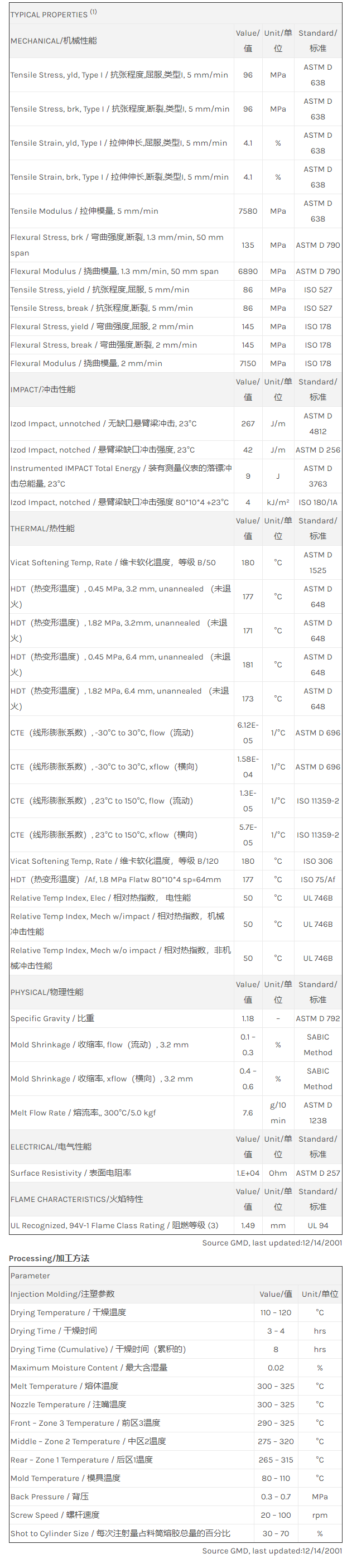 “肇庆LNP STAT-KON Noryl_HMC202M是一种聚苯醚+PS(PPE+PS)材料,加工方式为:注射成型。