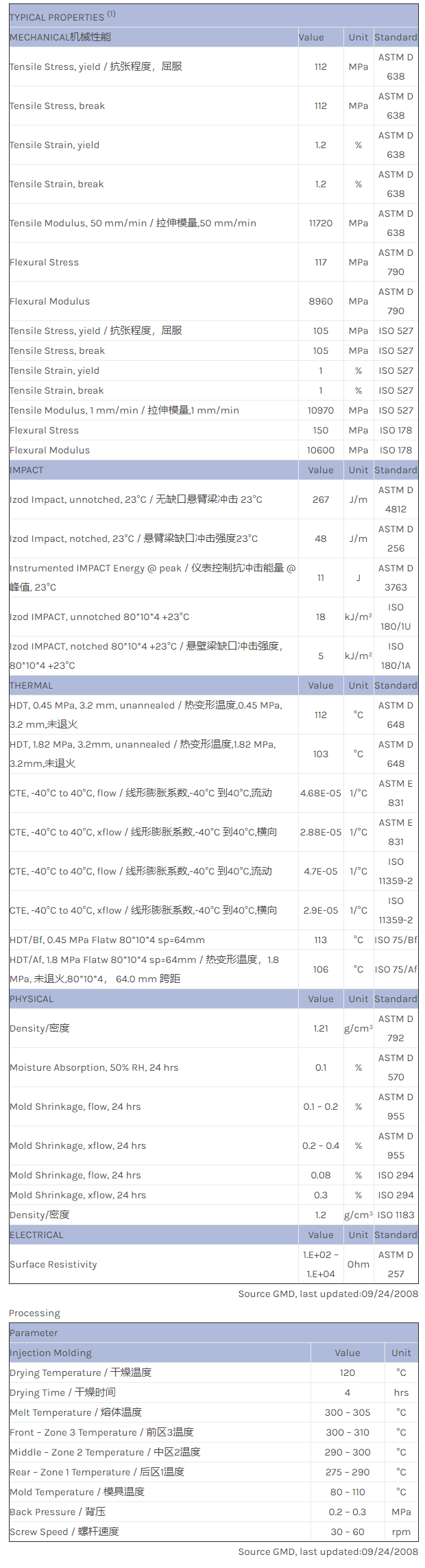 应用范围:产品描述LNP STATKON ZE0039物性表LNP STAT-KON ZE0039是一种聚亚苯基材料,含有的填充物为碳纤维增强材料,加工方式为:注射成型。
