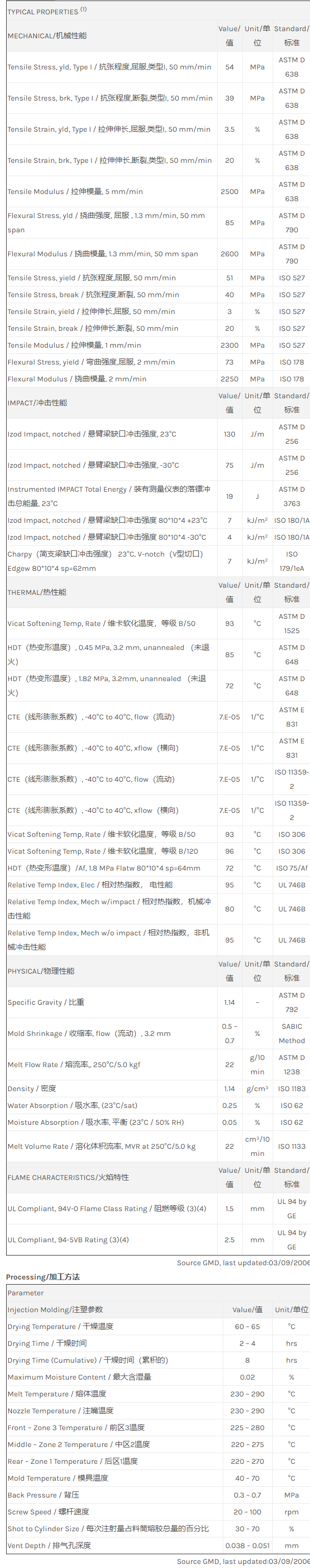 Noryl PPO PX1007物性表