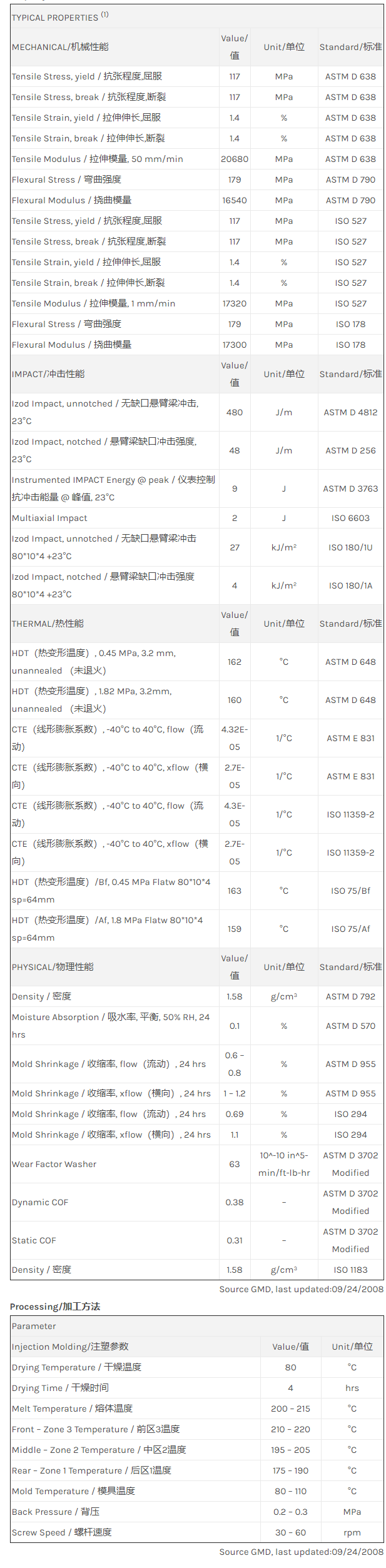应用范围: 产品描述 LNP Lubricomp KCL36物性表 “LNP LUBRICOMP KCL36是一种聚甲醛(POM)共聚物材料,含有的填充物为碳纤维增强材料,加工方式为:注射成型。 LNP LUBRICOMP KCL36的主要特性有: 传导性 润滑” LNP* Lubricomp* KCL36 is a compound based on Acetal Copolymer res