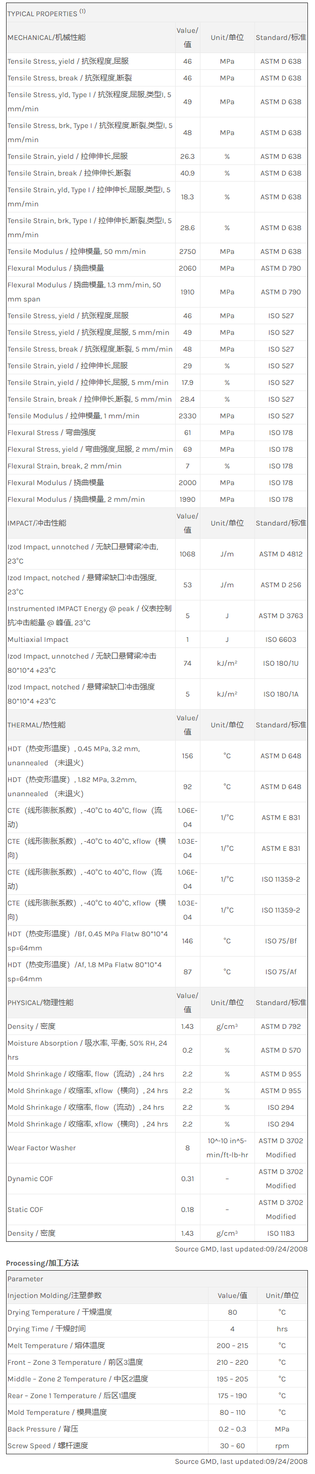 应用范围: 产品描述 LNP Lubricomp KP002物性表 “LNP LUBRICOMP KP002是一种聚甲醛(POM)共聚物产品,可以通过注射成型进行加工。 特性包括: 耐磨 润滑” LNP* Lubricomp* KP002 is a compound based on Acetal Copolymer resin containing PTFE, Silicone. Added