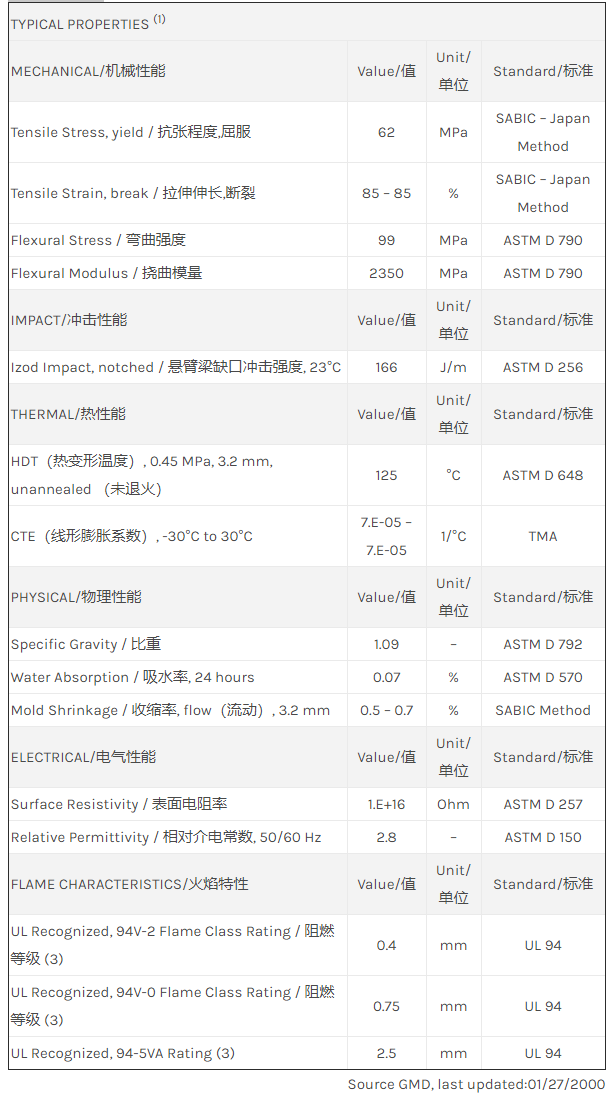 “NORYL PX9406P resin是一种聚苯醚+PS(PPE+PS)材料,加工方式为:注射成型。