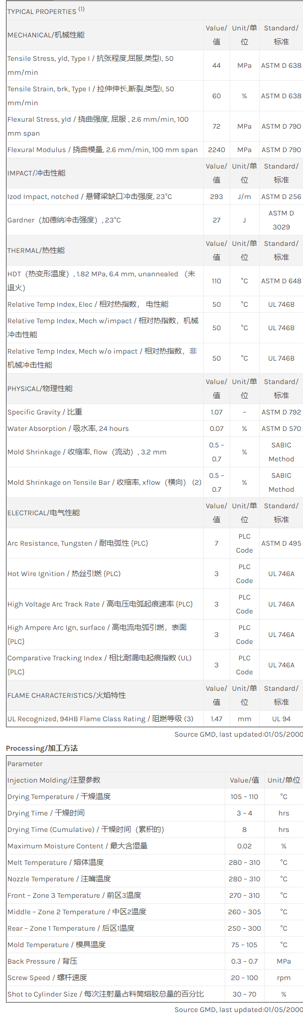 优良的生产率,耐热,抗冲击。优异的可加工性能。