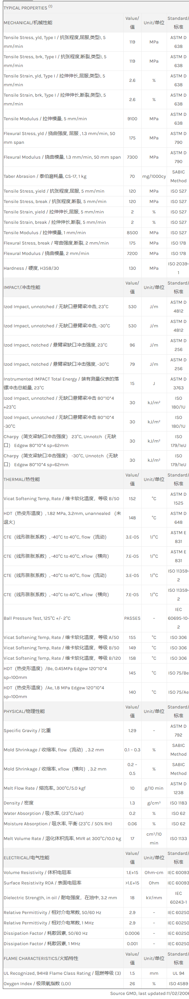应用范围: 产品描述 Noryl PPO GFN1630V物性表 “NORYL GFN1630V resin是一种聚苯醚+PS(PPE+PS)产品,含有的填充物为30%玻璃纤维增强材料,可以通过注射成型进行加工。 典型应用领域为:工程/工业配件。 特性包括: 阻燃/额定火焰 水解稳定性 ” 相关颜色色号:GFN1630V-73701、GFN1630V-801、GFN1630V-801F、G