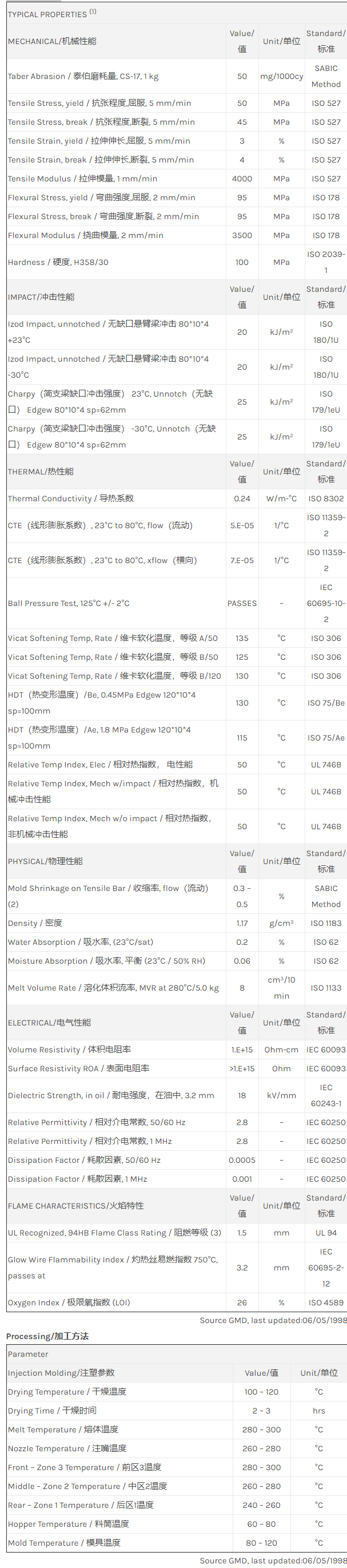 “NORYL GFN1V resin是一种聚苯醚+PS(PPE+PS)材料,含有的填充物为10%玻璃纤维增强材料, 加工方式为:注射成型。
