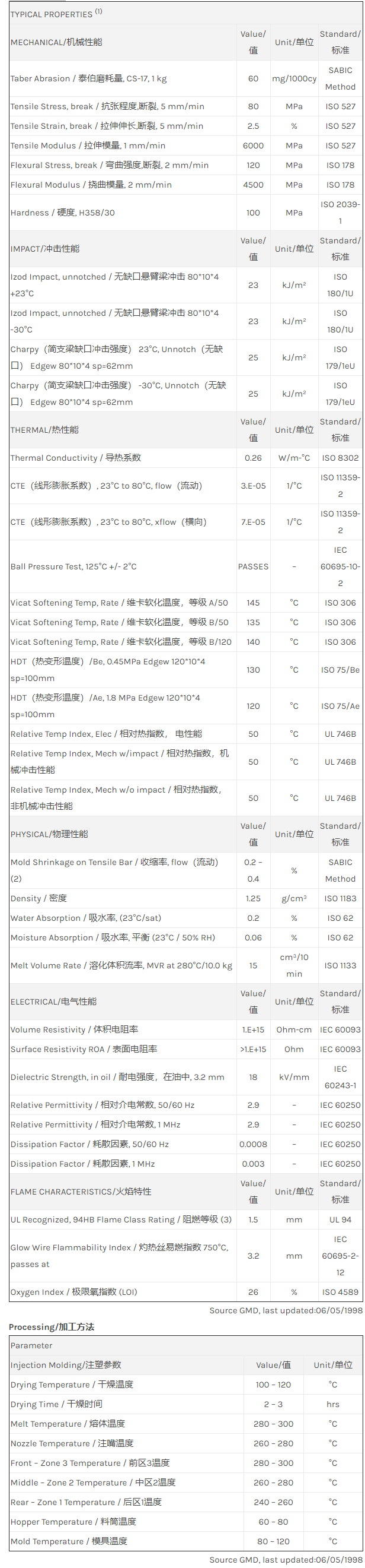 “NORYL GFN2V resin是一种聚苯醚+PS(PPE+PS)材料,含有的填充物为20%玻璃纤维增强材料。加工方式为:注射成型。