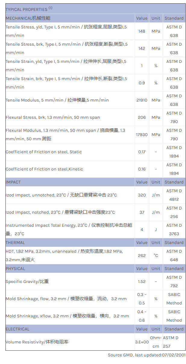 应用范围:产品描述LNP LUBRICOMP EXCP0083物性表30% carbon fiber/15% PTFE reinforced PPS. Conductive and wear resistant. Automotive, business equipment