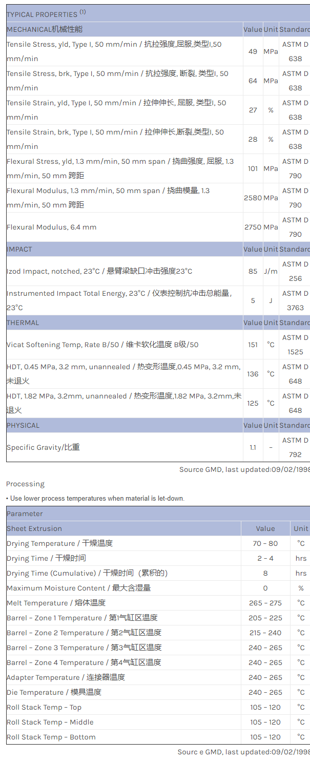 应用范围:产品描述NORYL PPO PKN4765物性表PPE+PS blend. Opaque. FDA compliant in limited colors. Extrusion and Injection Molding. Typical applications include High Performance Food Packaging.