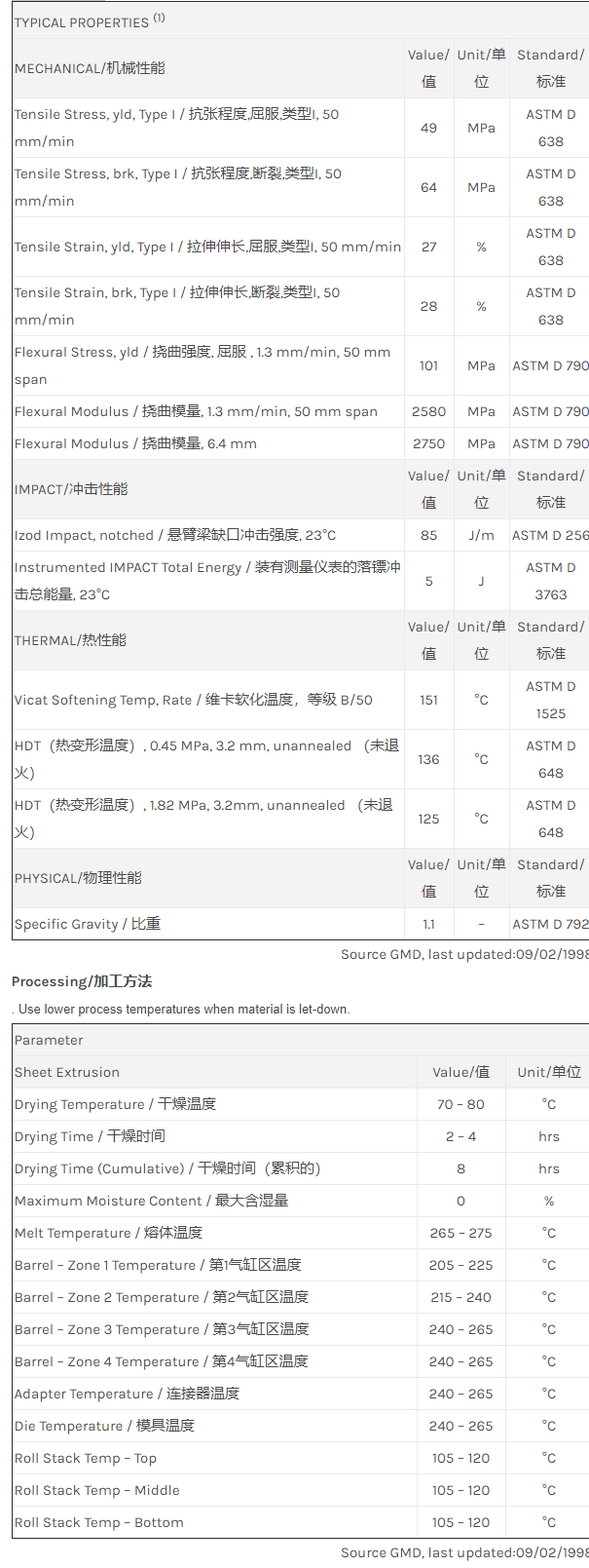 “NORYL PKN4775 resin是一种聚苯醚+PS(PPE+PS)产品,可以通过片材挤出成型进行加工。