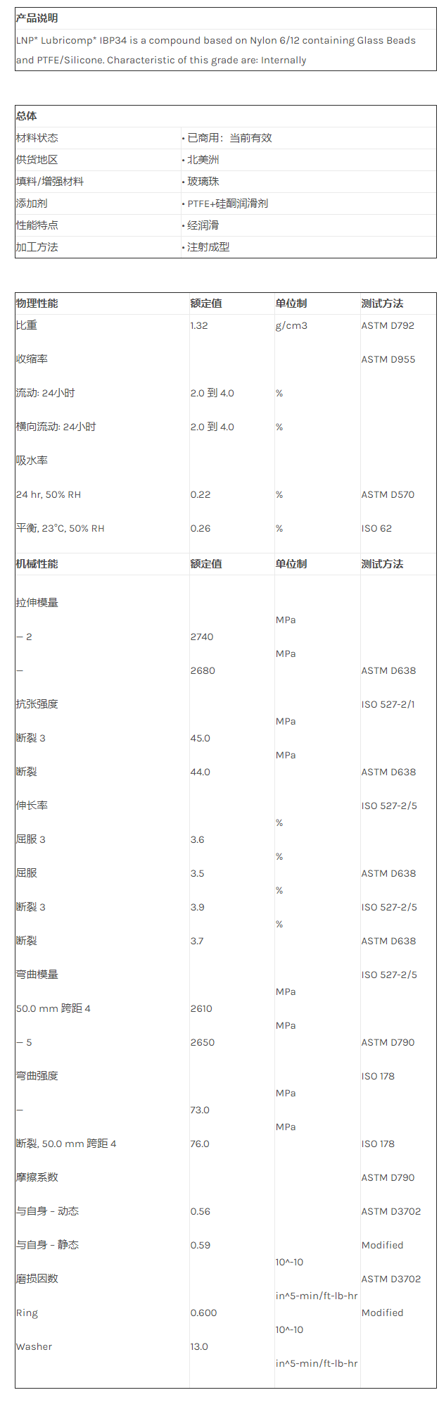 应用范围:产品描述LNP LUBRICOMP IBP34物性表