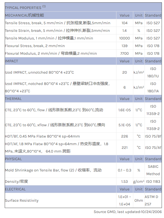 应用范围:产品描述LNP LUBRICOMP JX00061物性表LNP* Lubricomp* JX00061 is a compound based on Polyethersulfone resin containing Carbon Fiber, Proprietary Lubricant. Added features of this material include: Electrically