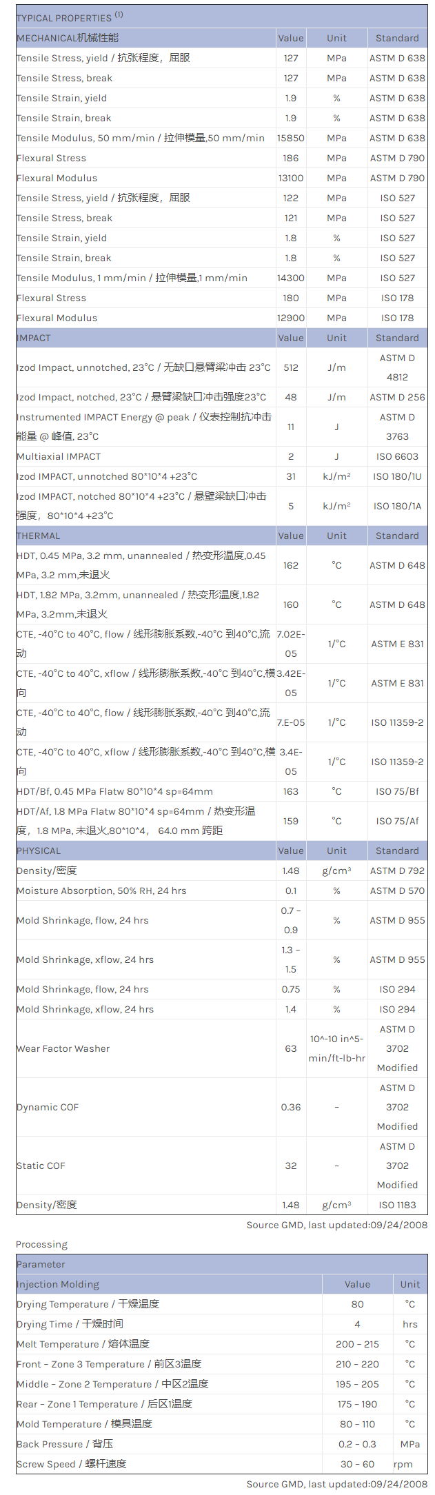 应用范围:产品描述LNP LUBRICOMP KCL34物性表LNP* Lubricomp* KCL34 is a compound based on Acetal Copolymer resin containing PTFE, Carbon Fiber. Added features of this material include: Internally Lubricated, Electricall