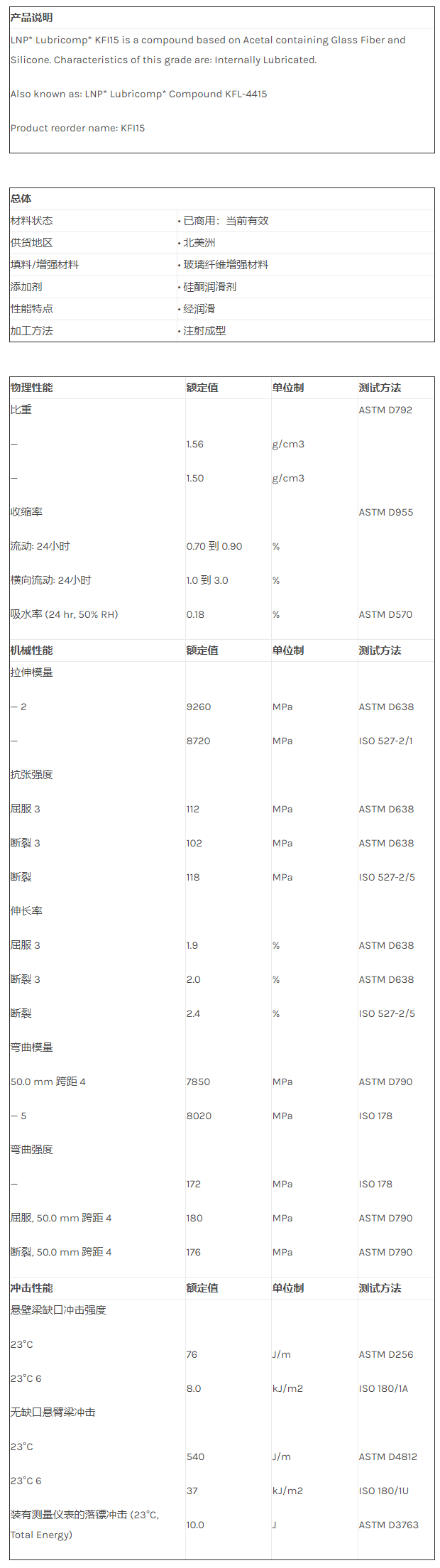 应用范围:产品描述LNP LUBRICOMP KFI15物性表