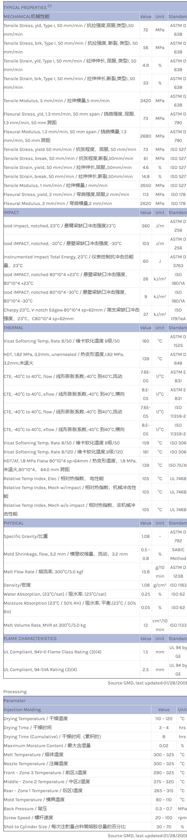 应用范围:产品描述NORYL PPO EXNL0316物性表Noryl* EXNL0316 resin is a modified PPE-PS blend that exhibits an excellent balance of non-halogenated flame retardance, high heat resistance, good flow, and low specifc gravi