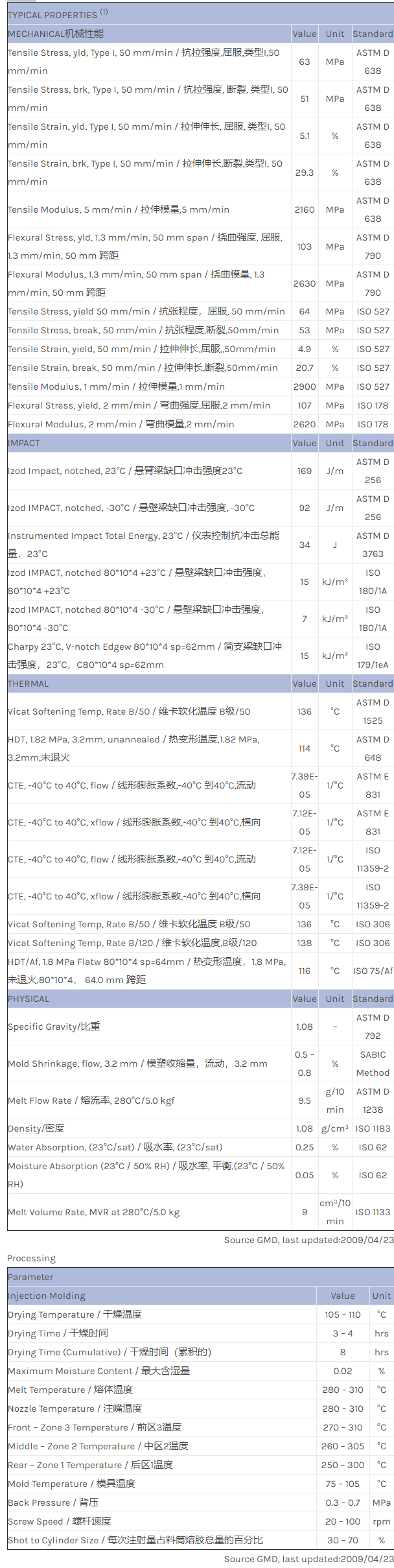 NORYL EXNL0357 resin是一种聚苯醚+PS(PPE+PS)产品,可以通过注射成型进行加工。
