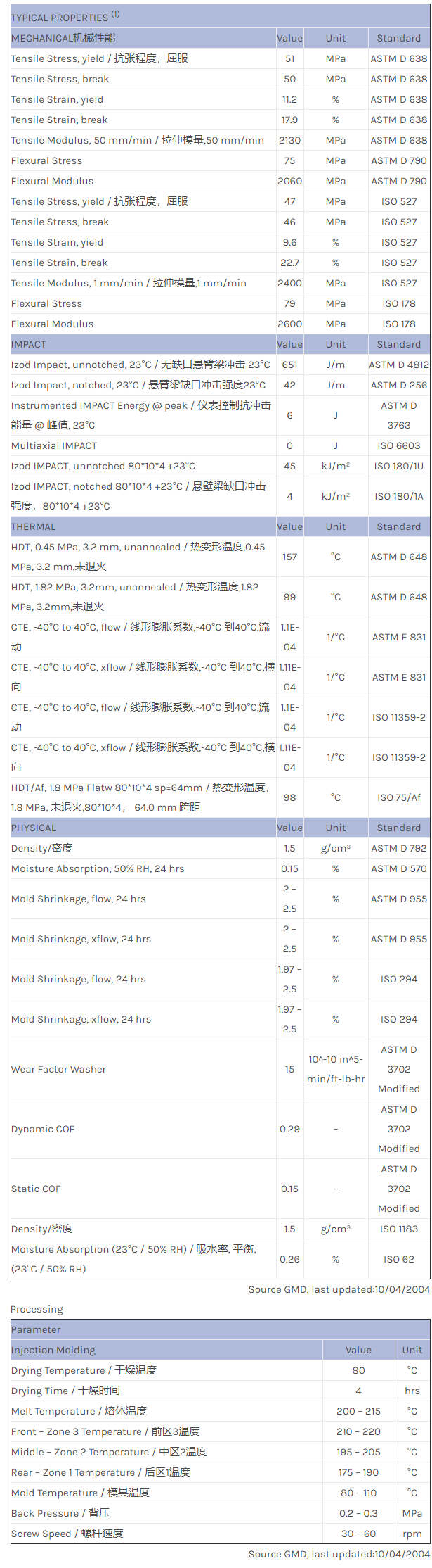 应用范围:产品描述LNP LUBRICOMP KL004U物性表LNP LUBRICOMP KL004U是一种聚甲醛(POM)共聚物产品,可以通过注射成型进行加工。特性包括:良好的抗紫外线能力耐磨润滑紫外线稳定