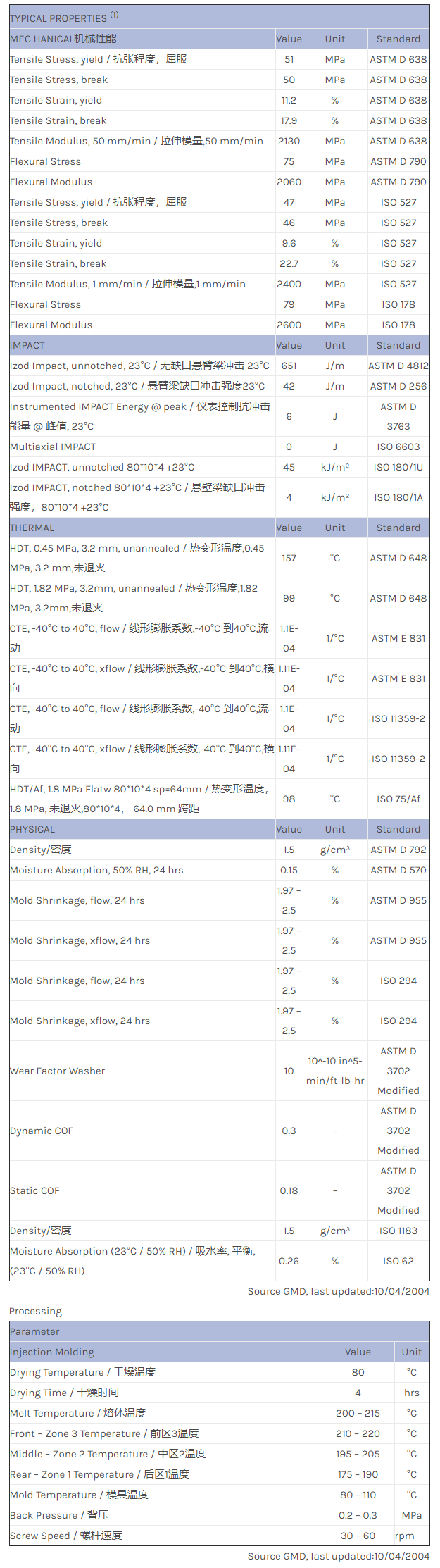 肇庆LNP LUBRICOMP KL004XXC是一种聚甲醛(POM)共聚物材料,加工方式为:注射成型。