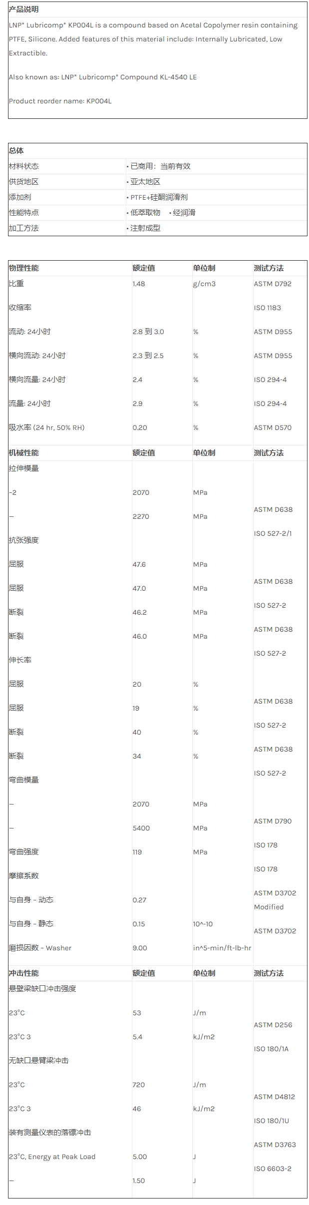 应用范围:产品描述LNP LUBRICOMP KP004L物性表