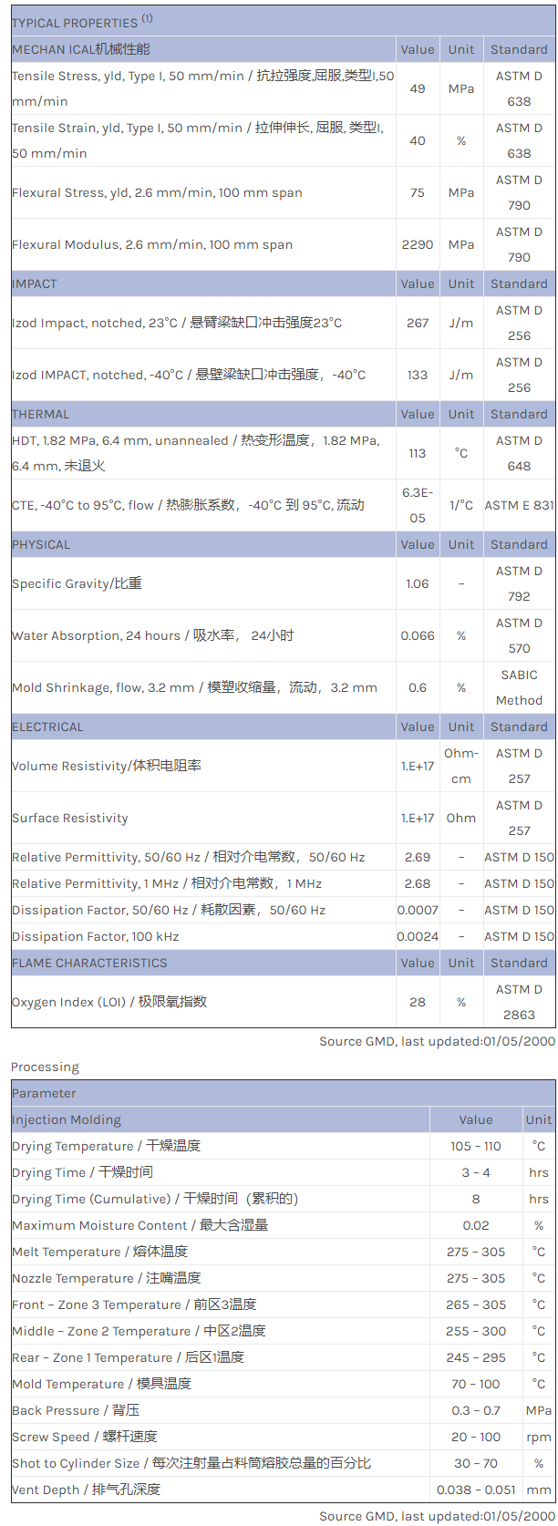 应用范围:产品描述NORYL PPO PX0871物性表汽车电气应用。 HDT(热畸变温度):236F (115C)。