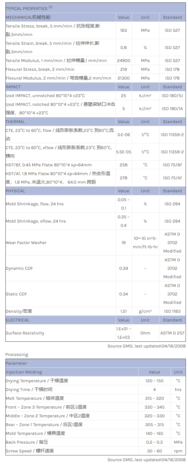 应用范围:产品描述LNP LUBRICOMP OCL36XXP物性表LNP* LUBRICOMP* OCL36XXP is a compound based on PPS- Linear resin containing PTFE, Carbon Fiber. Added features include : Internally Lubricated, Electrically Conductive .相