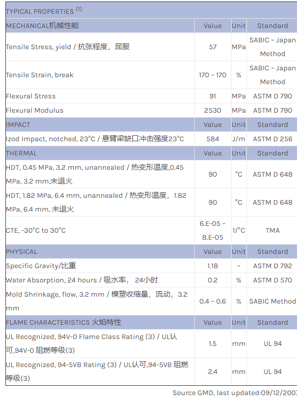 应用范围:产品描述CYCOLOY PC/ABS MC5001物性表