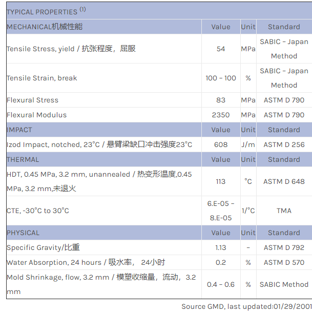 应用范围:产品描述CYCOLOY PC/ABS MC5504物性表