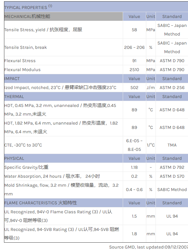 应用范围:产品描述CYCOLOY PC/ABS MC5900物性表
