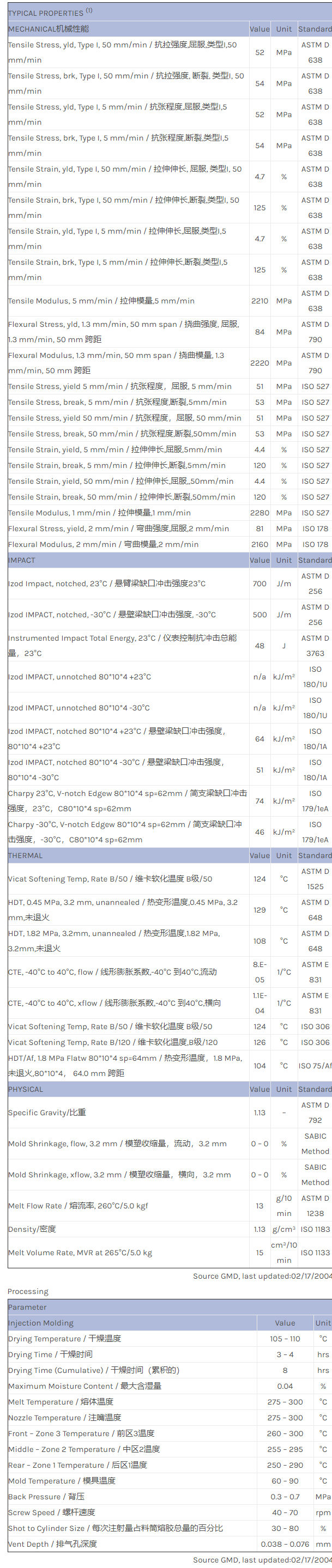 应用范围:产品描述CYCOLOY PC/ABS CY8620物性表Improved Hydrolytic Stability Grade for Instrument Panels