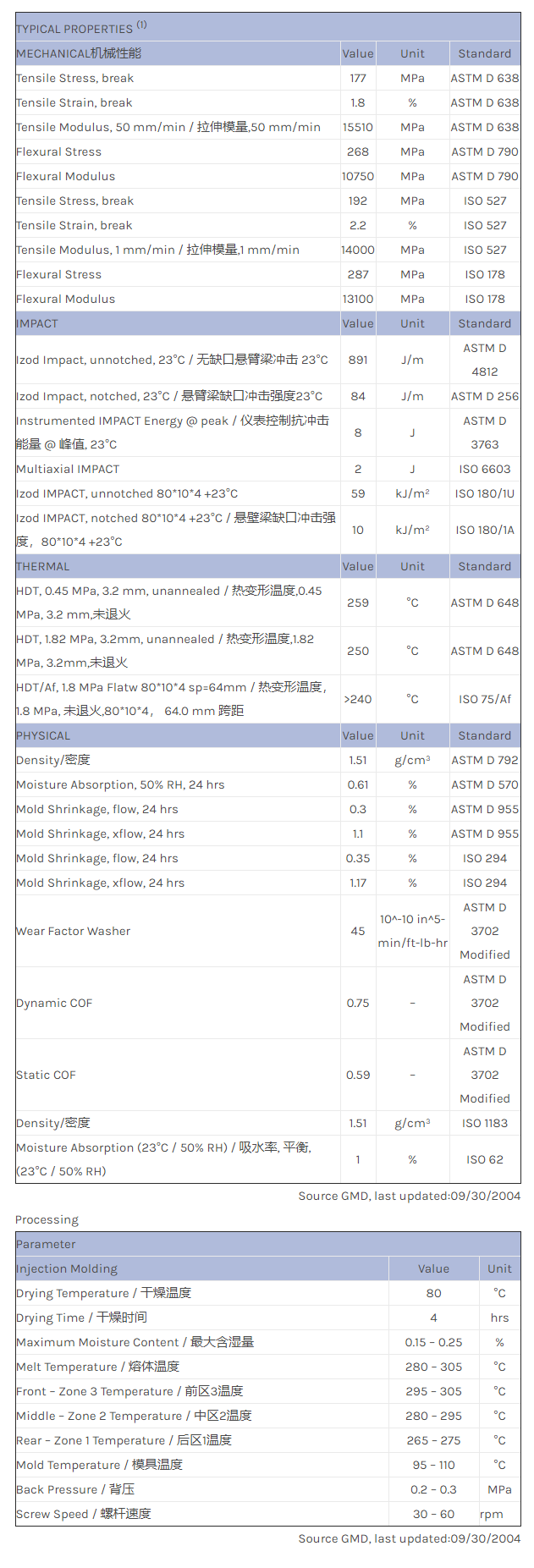 应用范围:产品描述LNP LUBRICOMP RFN18SXZ物性表LNP LUBRICOMP* RFN18SXZ is a compound based on Nylon 66 resin containing Glass Fiber, MOS2. Added features of this material include: Heat Stabilized.