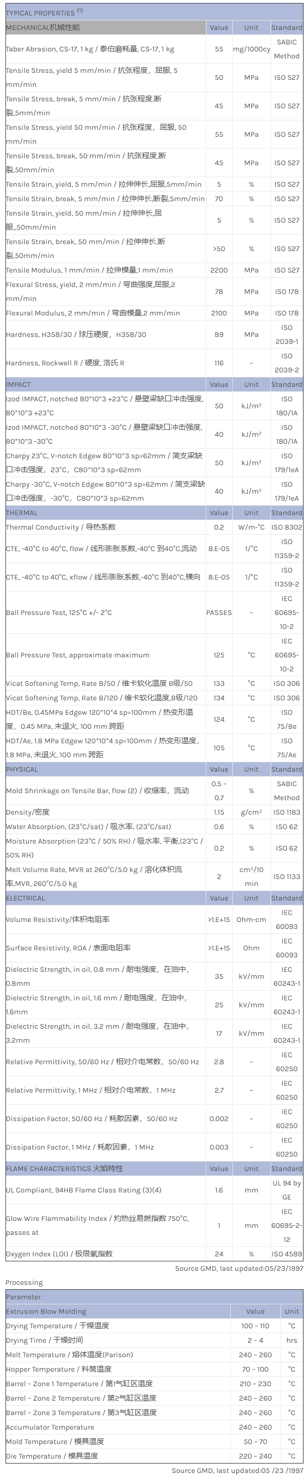 应用范围:产品描述CYCOLOY PC/ABS C3100物性表C3100 is blow moulding/extrusion grade offering low temperature ductility, high heat resistance and high meltstrength.