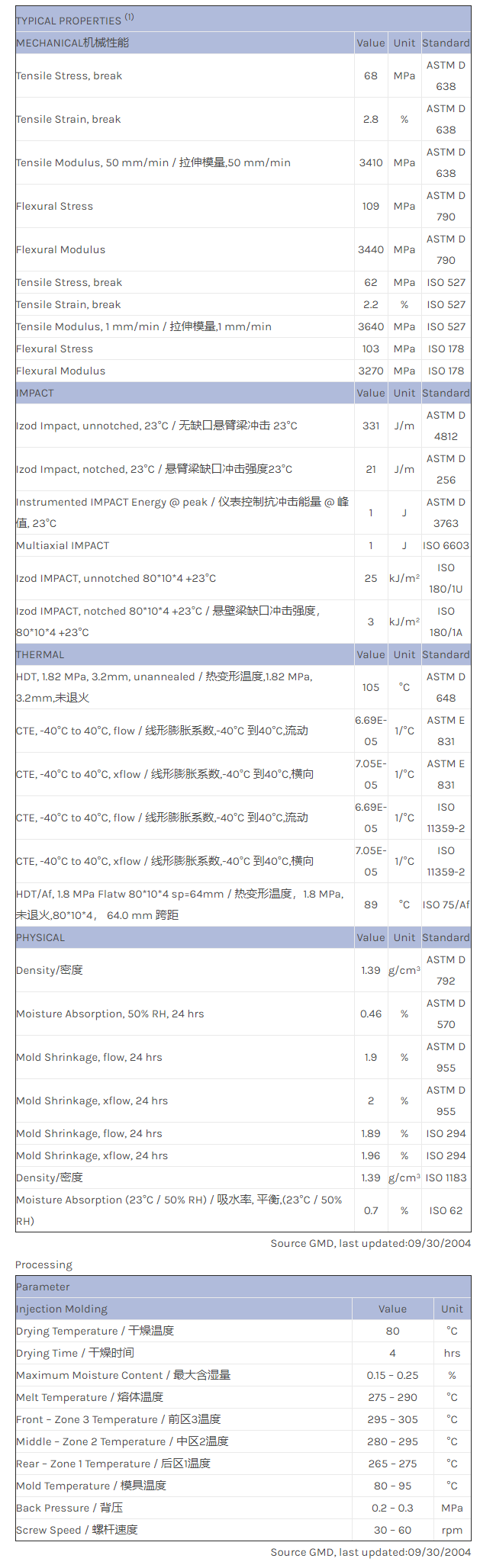 应用范围:产品描述LNP LUBRICOMP RL0019物性表LNP LUBRICOMP* RL0019 is a compound based on Nylon 66 resin containing Flame Retardant, PTFE. Added features of this material include: Flame Retardant.