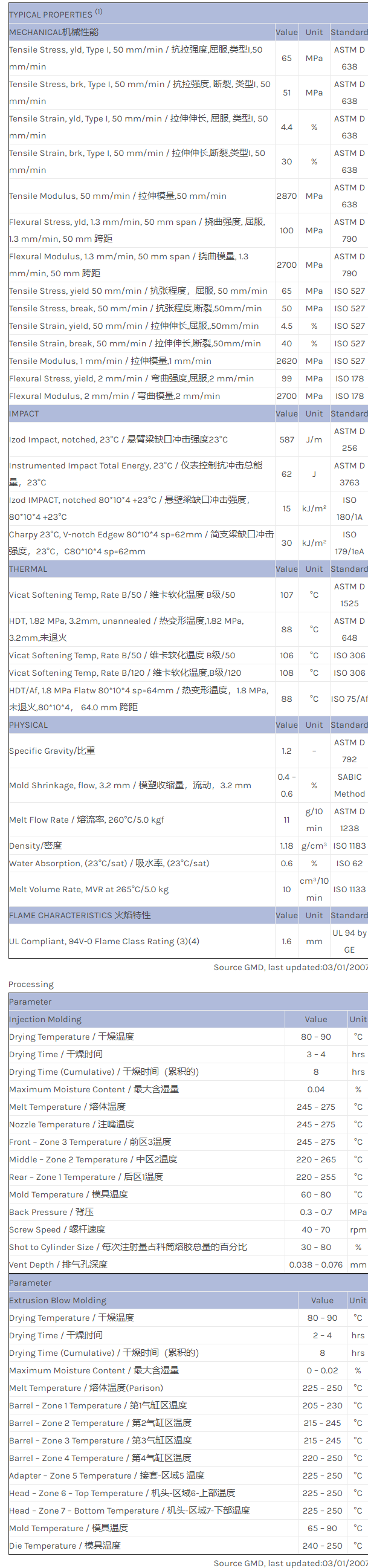 应用范围:产品描述CYCOLOY PC/ABS EXCY0184物性表Cycoloy* resin grade EXCY0184 is an extrudable thermoformable PC/ABS blend with Br- and Cl-free flame retardant systems. Key features of low gloss, good IMPACT, thermofor
