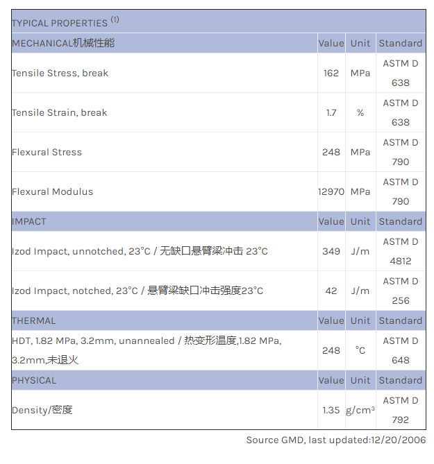 应用范围:产品描述LNP LUBRICOMP UCL24S物性表LNP* Lubricomp* UCL24S is a compound based on Polyphthalamide resin containing PTFE, Carbon Fiber. Added features of this material include: Internally Lubricated, Heat Stabi