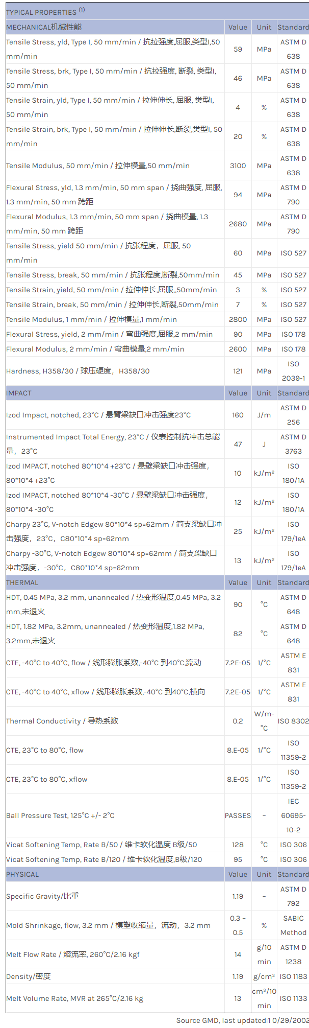应用范围:产品描述CYCOLOY PC/ABS FXC630FE物性表Color package may affect performance. Multi purpose flame retarded PC+ABS injection molding resin suitable for those applications in ferrite colour effects.