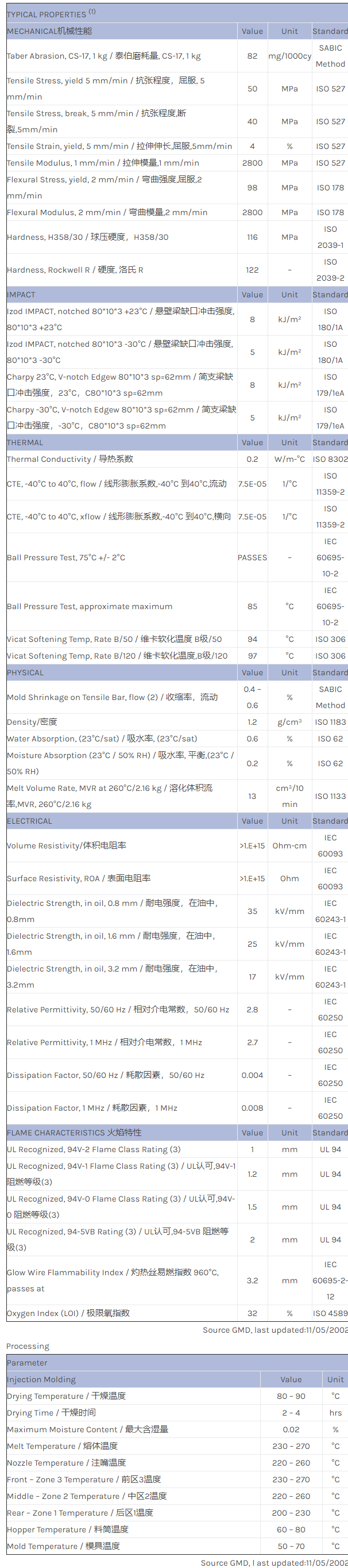 应用范围:产品描述CYCOLOY PC/ABS FXC630MA物性表CYCOLOY FXC630MA is a multi-purpose injection moulding grade suitable for white, grey or pastel colours with a natural marble look.
