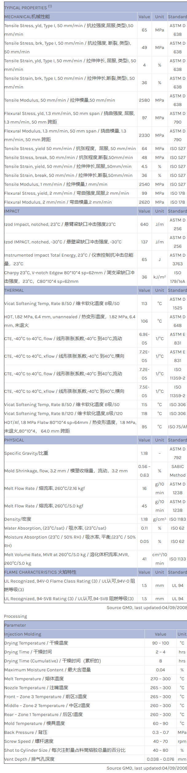 应用范围:产品描述CYCOLOY PC/ABS CX7510物性表Cycoloy* CX7510 resin is an injection moldable, flame retardant PC/ABS blend, with non-chlorinated & non-brominated flame retardants. Key features of Cycoloy CX7510 resin i