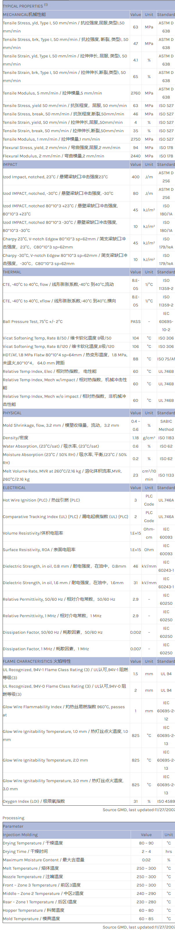 Cycoloy CY5100 resin的主要特性有: 阻燃/额定火焰、Flame Retardant、无卤素 、耐冲击