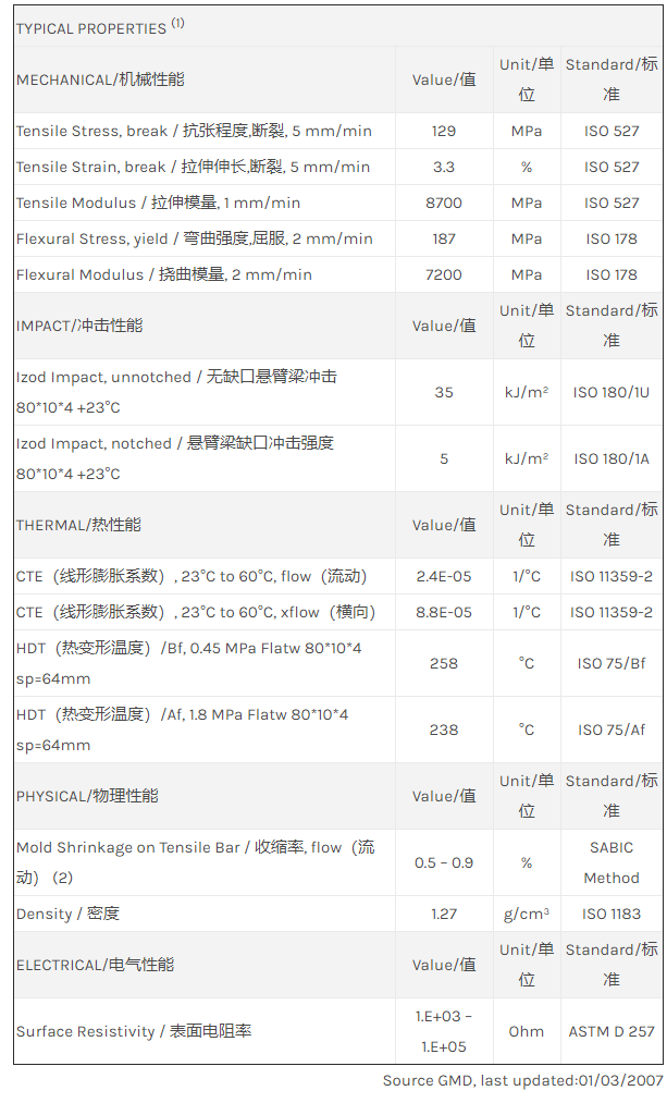 应用范围: 产品描述 LNP Lubricomp RX05050物性表 “LNP LUBRICOMP RX05050是一种聚酰胺66(尼龙66)材料,含有的填充物为芳族聚酰胺纤维和碳纤维增强材料。 LNP LUBRICOMP RX05050的主要特性有: 通过ROHS认证 传导性” LNP* Lubricomp* RX05050 is a compound based on Nylon 66