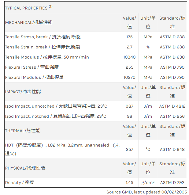 应用范围: 产品描述 LNP Lubricomp RX06480物性表 “LNP LUBRICOMP RX06480是一种聚酰胺66(尼龙66)产品,含有的填充物为30%玻璃纤维增强材料,可以通过注射成型进行加工。 特性包括: 耐磨 润滑” LNP LUBRICOMP* RX06480 is a compound based on Nylon 66 resin containing Glass
