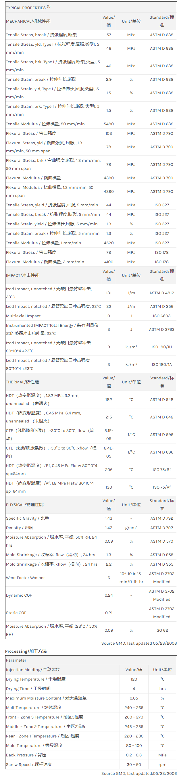 应用范围: 产品描述 LNP Lubricomp WAL34物性表 “LNP LUBRICOMP WAL34是一种聚丁烯对苯二甲酸酯(PBT)产品,含有的填充物为20%芳族聚酰胺纤维,可以通过注射成型进行加工货。 主要特性为:润滑。” LNP* Lubricomp* WAL34 is a compound based on Polybutylene Terephalate resin contai