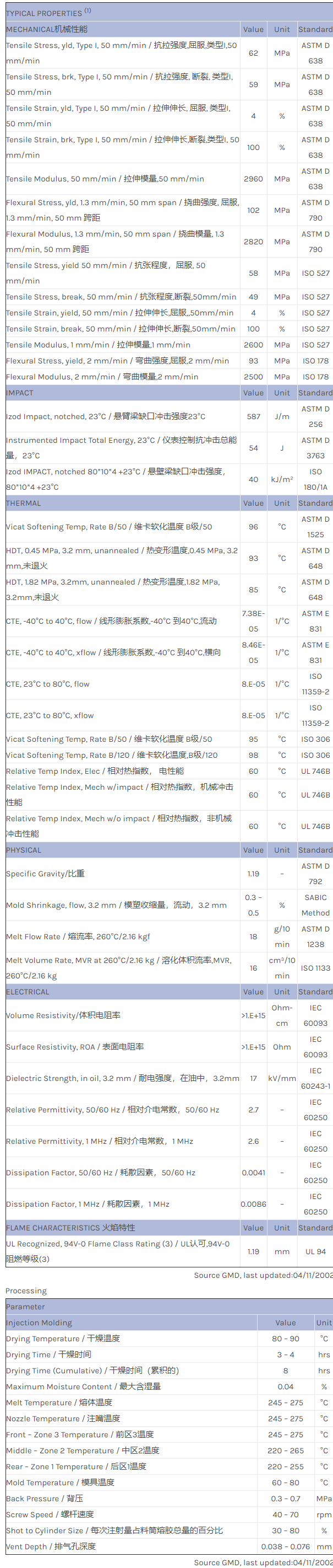 应用范围:产品描述CYCOLOY PC/ABS CY6120物性表Non-chlorinated and non-brominated flame retardant PC/ABS featuring good flow and IMPACT properties. UL-94 V0 listed at 1.2mm intended for various thin wall applications.相关