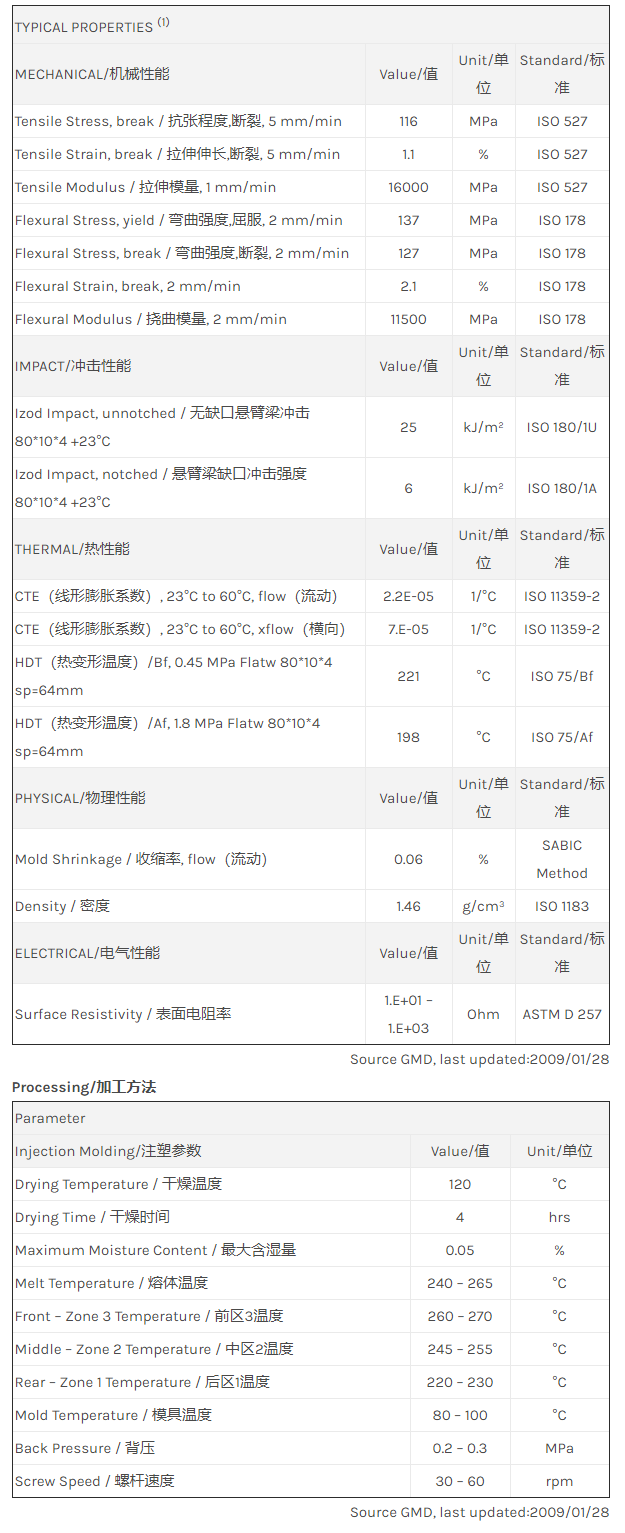 应用范围: 产品描述 LNP Lubricomp WCP36物性表 LNP LUBRICOMP WCP36是一种聚丁烯对苯二甲酸酯(PBT)材料,含有的填充物为碳纤维增强材料,加工方式为:注射成型。 LNP* LUBRICOMP* WCP36 is a compound based on Polybutylene Terephalate resin containing Carbon Fiber,